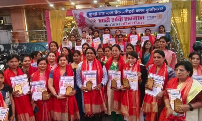 कुशीनगर। कुशीनगर चैरिटेबल ब्लड बैंक एवं रोटरी क्लब कुशीनगर के संयुक्त तत्वावधान में अंतर्राष्ट्रीय महिला दिवस के अवसर पर नारी शक्ति सम्मान कार्यक्रम का आयोजन किया गया। इस कार्यक्रम में समाज के विभिन्न क्षेत्रों में उत्कृष्ट कार्य करने वाली महिलाओं को सम्मानित किया गया। कार्यक्रम के मुख्य अतिथि बुद्ध स्नातकोत्तर महाविद्यालय कुशीनगर के प्राचार्य प्रोफेसर डॉ. विनोद मोहन मिश्रा ने कहा, महिलाओं का सशक्तिकरण समाज के विकास का आधार है। शिक्षा, स्वास्थ्य और आत्मनिर्भरता के क्षेत्र में महिलाओं की भागीदारी जितनी बढ़ेगी, समाज उतना ही प्रगतिशील होगा। विशिष्ट अतिथि कुशीनगर महोत्सव के संयोजक विनय राय ने अपने संबोधन में कहा कि आज महिलाएं हर क्षेत्र में अपनी सफलता की छाप छोड़ रही हैं। हमें उनके प्रयासों को और अधिक सराहनीय बनाने के लिए सहयोग और समर्थन देना चाहिए। रोटरी क्लब कुशीनगर के अध्यक्ष वाहिद अली ने कहा, रोटरी क्लब सदैव समाज सेवा और महिला सशक्तिकरण के कार्यों में अग्रणी भूमिका निभाता रहा है। यह आयोजन उन महिलाओं के प्रति सम्मान व्यक्त करने का एक प्रयास है, जिन्होंने अपने कार्यों से समाज में सकारात्मक परिवर्तन लाने का कार्य किया है। कार्यक्रम के सफल आयोजन में कुशीनगर चैरिटेबल ब्लड बैंक के संचालक राजीव तिवारी का विशेष योगदान रहा। उन्होंने सभी अतिथियों एवं सहभागियों का आभार व्यक्त करते हुए कहा कि महिला सशक्तिकरण केवल एक विचार नहीं, बल्कि इसे एक सामाजिक आंदोलन के रूप में आगे बढ़ाने की जरूरत है। इस अवसर पर विभिन्न क्षेत्रों में सराहनीय कार्य करने वाली महिलाओं को सम्मानित किया गया। कार्यक्रम में गणमान्य नागरिक, समाजसेवी और शिक्षाविद् बड़ी संख्या में उपस्थित रहे। सम्मानित होने वाले महिलाओं में कालिंदी त्रिपाठी, डॉ. वीणा कुमारी, डॉ. ममता यादव, डॉ. नेहा कुमारी पाठक, किरण सिंह, एडवोकेट सुमन सिंह, एडवोकेट शकुन पटेल, एडवोकेट वंदना, रुचि सिंह, प्रियंका पाण्डेय, मोना सिंह, रेनू सिंह, नसरीन अख्तर, आरती दुबे, मधुलिका, कुसुम द्विवेदी, पूनम गुप्ता, प्रियंका श्रीवास्तव, शैल जयसवाल, रश्मि सिंह तोमर, निशु विश्वकर्मा, सुनीता सिंह, रजनी मिश्रा, बबीता राय, अपर्णा मिश्रा, संगीता सिंह, ममता शर्मा, रागिनी सिंह बुंदेला, अंजली खरवार, फौजिया परवीन, सुनीता तिवारी, रीना शर्मा, प्रीति, डॉ. जलीना सिंह, अंजुम आरा, कुमुद सिंह शामिल रही। इस अवसर पर रोटरी क्लब का अध्यक्ष वाहिद अली, सचिव अजय सिंह, वरिष्ठ उपाध्यक्ष विजय कुमार गुप्ता, उपाध्यक्ष अंजली खरवार, कोषाध्यक्ष दुर्गेश चतुर्वेदी, सार्जेंट एट आर्म्स विजय कृष्ण द्विवेदी, सह सचिव अखिलेश शर्मा, डॉ श्याम बिहारी जायसवाल, मीडिया प्रभारी अरुण वर्मा , गोविन