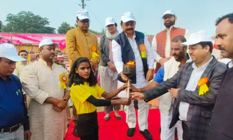 कुशीनगर । 28 वीं बेसिक बाल क्रीड़ा प्रतियोगिता एवं शैक्षिक समारोह 2023 का उद्घाटन शुक्रवार को जिला खेल स्टेडियम रवींद्र नगर धूस में किया गया। सांसद विजय कुमार दुबे, सीडीओ गुंजन द्विवेदी, एसपी धवल जायसवाल व बीएसए डा. रामजियावन मौर्य ने मां सरस्वती की प्रतिमा पर माल्यार्पण व दीप प्रज्वलन कर आयोजन का शुभारंभ किया। बाल खिलाड़ियों के परेड की सलामी ली, खेल भावना की शपथ दिलवाई तथा प्रज्वलित मशाल को गत चैंपियन विशुनपुरा की छात्रा वंदना को सौंपा। सांसद ने कहा कि केंद्र सरकार खेलो भारत अभियान से खेल गतिविधियों को बढ़ावा दे रही है। प्रदेश सरकार भी प्रतियोगिताओं के माध्यम से प्रतिभाओं को निखार रही है। अंतर्गत ऐसे आयोजनों का मुख्य मकसद जनपद और प्रदेश में खेल भावना व खेल संबंधित एक्टिविटी को प्रोत्साहित करना होना चाहिए। सीडीओ ने बच्चों को अग्रिम भविष्य की शुभकामनाएं देते हुए उम्मीद की कि आने वाले समय में वे जनपद और प्रदेश का नाम रोशन करेंगें। कहा कि विभिन्न प्रतियोगिताओं के माध्यम से ये बच्चे जनपद का और राज्य का नाम स्वर्णाक्षरों में अंकित करवाएं। उन्होने बच्चों के विजयी होने की शुभकामनाएं दी व आगे मंडलीय प्रतियोगिता में प्रतिभाग करने हेतु आशीष दिया। एसपी धवल जायसवाल ने प्रशिक्षकों का भी धन्यवाद किया जिन्होंने जनपद की प्रतिभा को उभारने में अपना योगदान दिया है। उन्होनें कहा कि इससे खेल की भावना को प्रोत्साहन मिलता है। बीएसए ने अतिथियों के प्रति आभार व्यक्त किया। खेल सचिव सुरेंद्र बहादुर सिंह, आयोजन सचिव हिमांशु सिंह, बीईओ देवमुनि वर्मा, जिला व्यायाम शिक्षक अनिल कुमार मिश्र, रेनूबाला सिंह, अमित श्रीवास्तव, नवनीत तिवारी आदि की देखरेख में हुई प्रतियोगिता में जूनियर स्तर बालक वर्ग 600 मीटर दौड़ में अंकित प्रथम, नासिर द्वितीय, जूनियर स्तर बालिका वर्ग 600 मीटर में निशा साहनी प्रथम, प्रेमशीला द्वितीय, 200 मीटर बालिका वर्ग में गीता प्रथम, वंदना द्वितीय, 400 मीटर में बालक वर्ग मे अंकित प्रथम, 200 मीटर में प्रियांशु प्रथम रहे। प्राथमिक स्तर बालिका खोखो प्रतियोगिता में दुदही की टीम चैंपियन रही। पीटी विशेष प्रदर्शन में हाटा की टीम प्रथम, तमकुही द्वितीय, योगाभ्यास बालक वर्ग मे हाटा प्रथम व पडरौना द्वितीय, बालिका पडरौना प्रथम, कसया की टीम द्वितीय स्थान पर रहीं। इसके अलावा दौड़, प्राथमिक खोखो, कबड्डी, फुटबाल, बालीवाल आदि प्रतियोगिताएं आयोजित हुईं। संचालन रवींद्र नारायण, दुर्गेश सिंह व विनय कुशवाहा ने ने संयुक्त रुप से किया। इस दौरान बीईओगण उदय शंकर राय , अमित सिंह, अंकिता सिंह, रीता गुप्ता, सत्येंद्र पांडेय, राजेश कुमार, जयप्रकाश मौर्य, आशीष मिश्र, मुकेश नारायण मिश्र शिक्षक नेता राजेश तिवारी, र
