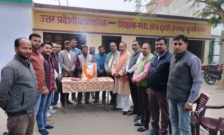 कुशीनगर । बुधवार को शिक्षक भवन दुदही परिसर में डा. भीमराव अंबेडकर के परिनिर्वाण दिवस पर आयोजित सभा में शिक्षकों ने उन्हे श्रद्धांजलि अर्पित की।