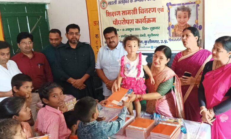 लाडली अलंकृति के जन्मोत्सव पर बच्चों को भेंट हुई शिक्षण सामग्री