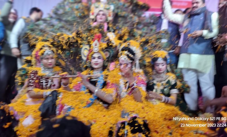 राधा-कृष्ण पर फूलों की वर्षा, जयकारे से गूंजा वातावरण