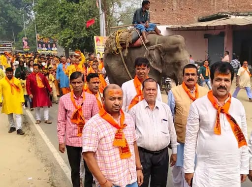 कुशीनगर। नगर स्थित भलुही मदारी पट्टी टोला वृति में नव निर्मित त श्री हनुमान मन्दिर प्राण प्रतिष्ठा समारोह के अवसर पर गाजे बाजे के साथ भव्य कलश यात्रा निकाली गई। 12 नवम्बर को मन्दिर में हनुमान जी की मूर्ति का प्राण प्रतिष्ठा कार्यक्रम होगा और 13 नवम्बर को विशाल भंडारा आयोजित है। सोमवार को मन्दिर परिसर से कन्याओं और विशिष्ट नागरिकों द्वारा कलश यात्रा निकाली गई। जिसमें भाजपा के वरिष्ठ नेता अशोक कुमार मिश्रा, नगरपालिका परिषद कुशीनगर अध्यक्ष राकेश जायसवाल, सभासद मधुबाला त्रिपाठी आदि के नेतृत्व में कलस यात्रा वृति टोला से रामकोला रोड, पड़रौना रोड होते हुए गांधी चौक और वहां से हिरण्यवती नदी करुणा सागर घाट पहुंची जहां आचार्य रितेश दूबे व आचार्य गण के वैदिक मंत्रोच्चार के बीच कलश में जल भरा गया और वापस एयरपोर्ट होते हुए यात्रा वृति पहुंची। नपाप अध्यक्ष प्रतिनिधि राकेश जायसवाल ने कहा कि प्रभु हनुमान की कृपा से सभी कष्ट दूर होते हैं। जहां यजमान नर्वदेश्वर मिश्र, सुभाष मिश्र, सुधाकर मिश्र, अरुण कुमार मिश्र, मृतुन्जय मिश्र, विजय मिश्र ने ही सपरिवार पूजन कर कलश की स्थापना की। इस दौरान राकेश धर द्विवेदी, बैसम द्विवेदी, पारस मिश्र, नीरज द्विवेदी, अम्बरीष लाल श्रीवास्त्व, डब्लू मिश्र, प्रमोद मिश्र, रामसकल द्विवेदी, दिनेश मिश्र उपस्थित रहे।