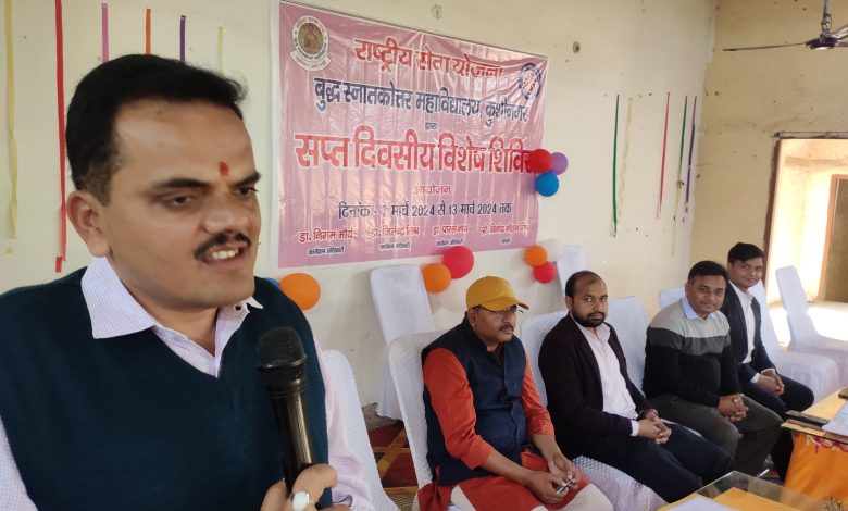 कुशीनगर । एनएसएस समर्पण अनुशासन और सेवा करने वाला संगठन है। एनएसएस का स्वयंसेवक होना गर्व और जिम्मेदारी का भाव पैदा करता है। स्वयं सेवक समाज में परिवर्तन के अग्रदूत है। समाज की कमियों को दूर कर अन्दर से सुधार करने वाला संगठन राष्ट्रीय सेवा योजना है। इस हेतु यह समाज और राष्ट्र स्वयंसेवकों का ऋणी है। उक्त बातें बुद्ध स्नातकोत्तर महाविद्यालय के प्राचार्य प्रो विनोद मोहन मिश्र ने राष्ट्रीय सेवा योजना के उदघाटन के अवसर पर अपने सम्बोधन के दौरान कहा। वे कार्यक्रम की अध्यक्षता कर रहे थे। मुख्य अतिथि सुमित त्रिपाठी ने कहा कि राष्ट्रीय सेवा योजना,स्वयसेवकों के अंदर राष्ट्रीय चरित्र का विकास करती है। हम राष्ट्र को अपनी मां मानते है। यह आपको तय करना है कि राष्ट्र निर्माण हेतु आप किस तरह से योगदान दे सकते हैं। शिवत्व वही है जहां विरूद्ध का समन्वय होता है। राष्ट्रीय सेवा योजना के स्वयंसेवक में शिवत्व का भाव कूट कूट कर भरा होता है।युवा पक्षी है उन्मुक्त आकाश के लिए,युवा ऊर्जा राष्ट्र के लिए,युवा दृष्टि है समाज के लिए। राष्ट्र निर्माण में युवा ऊर्जा सकारात्मक योगदान दे सकती है । मुख्य वक्ता डॉ वीरेंद्र साहू ने बोलते हुए कहाकी जिसके अंदर असीमित ऊर्जा होती है वही युवा है। भविष्य में हमारा राष्ट्र कैसा होगा यह युवा ही तय करते है। हमे समस्याओं से लड़ना है न कि आपस मे लड़ना है। यह दृष्टि हमारे युवाओं को विकसित करनी है। प्रसन्नता से ऊर्जा मिलती है और ऊर्जा कार्य सिद्धि का कारण बनती है। अतः हमें सदैव प्रसन्न रहना चाहिए। अपने अनुभवों से सीखना, निरंतर अभ्यास और प्रश्न करने का साहस आपको सशक्त युवा बनाता है। समर्थ युवा ही राष्ट्र निर्माण का कार्य कर सकता है। बौद्धिक सत्र में कार्यक्रम का संचालन स्वयंसेविका प्रेरणा शर्मा ने किया।स्वयंसेविका अर्चना कुशवाहा, रूबीना खातून,अनुपमा साह,रिया भारती ने सांस्कृतिक प्रस्तुति दी। स्वागत एवं परिचय कार्यक्रम अधिकारी डॉ निगम मौर्य ने किया। आभार ज्ञापन डॉ पारस नाथ ने किया। कार्यक्रम में मार्गदर्शन की भूमिका निभा रहे डॉ जितेंद्र मिश्र ने इस शिविर में कुल 150 स्वयं सेवक भाग ले रहे है।