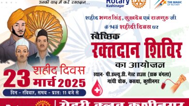 शहीद दिवस पर रक्तदान शिविर का आयोजन, रक्तदाताओं को मिलेगा विशेष सम्मान कुशीनगर । अमर शहीद भगत सिंह, सुखदेव…